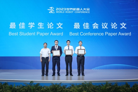 世界機器人大會先進機器人與自動化國際學(xué)術(shù)會議主席陳英頒發(fā)最佳學(xué)生論文、最佳會議論文獎項本屆大會學(xué)術(shù)會議共收到來自中國、美國、法國等8個國家的97篇論文。經(jīng)過前期盲審和現(xiàn)場答辯等嚴格評審流程,評選出了“最佳學(xué)生論文”和“最佳會議論文”。中國電子學(xué)會副理事長兼秘書長、世界機器人大會先進機器人與自動化國際學(xué)術(shù)會議主席陳英為最佳學(xué)生論文、最佳會議論文作者頒獎。
